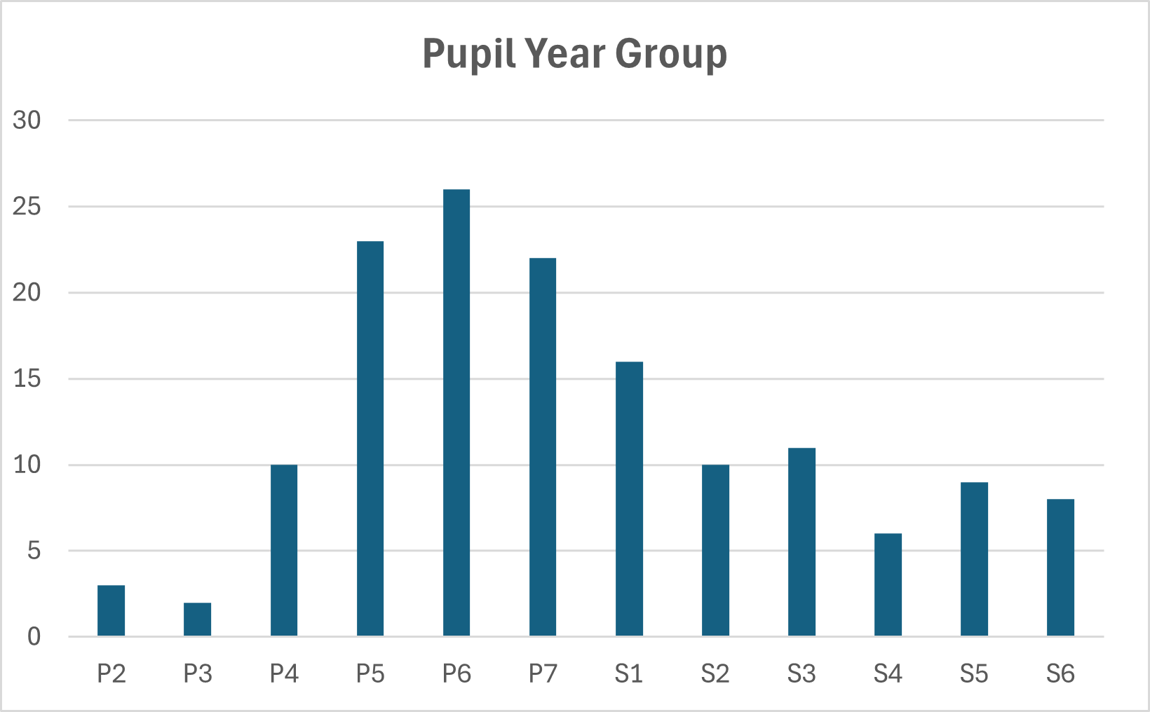 The table below shows the number of pupils in each year group: