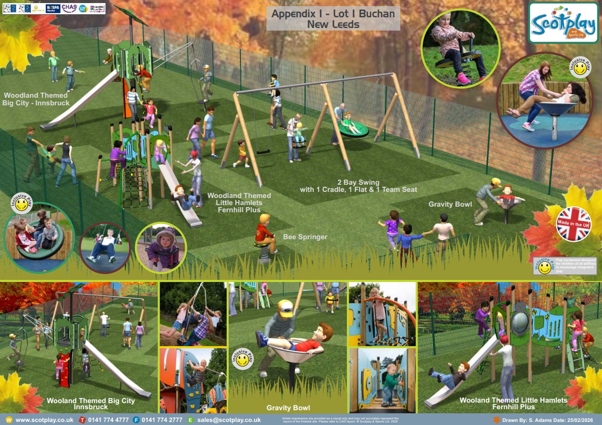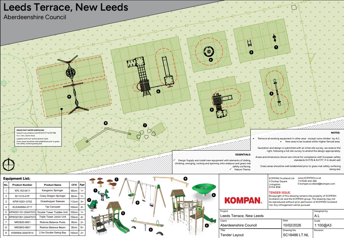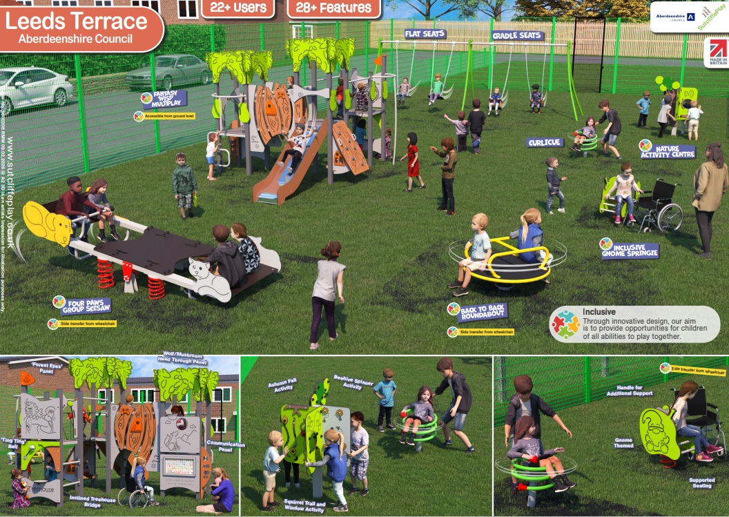 Aberdeenshire Council is delighted to confirm that funding has been secured for the redevelopment of Leeds Terrace New Leeds. We are now seeking community input to select new play equipment.