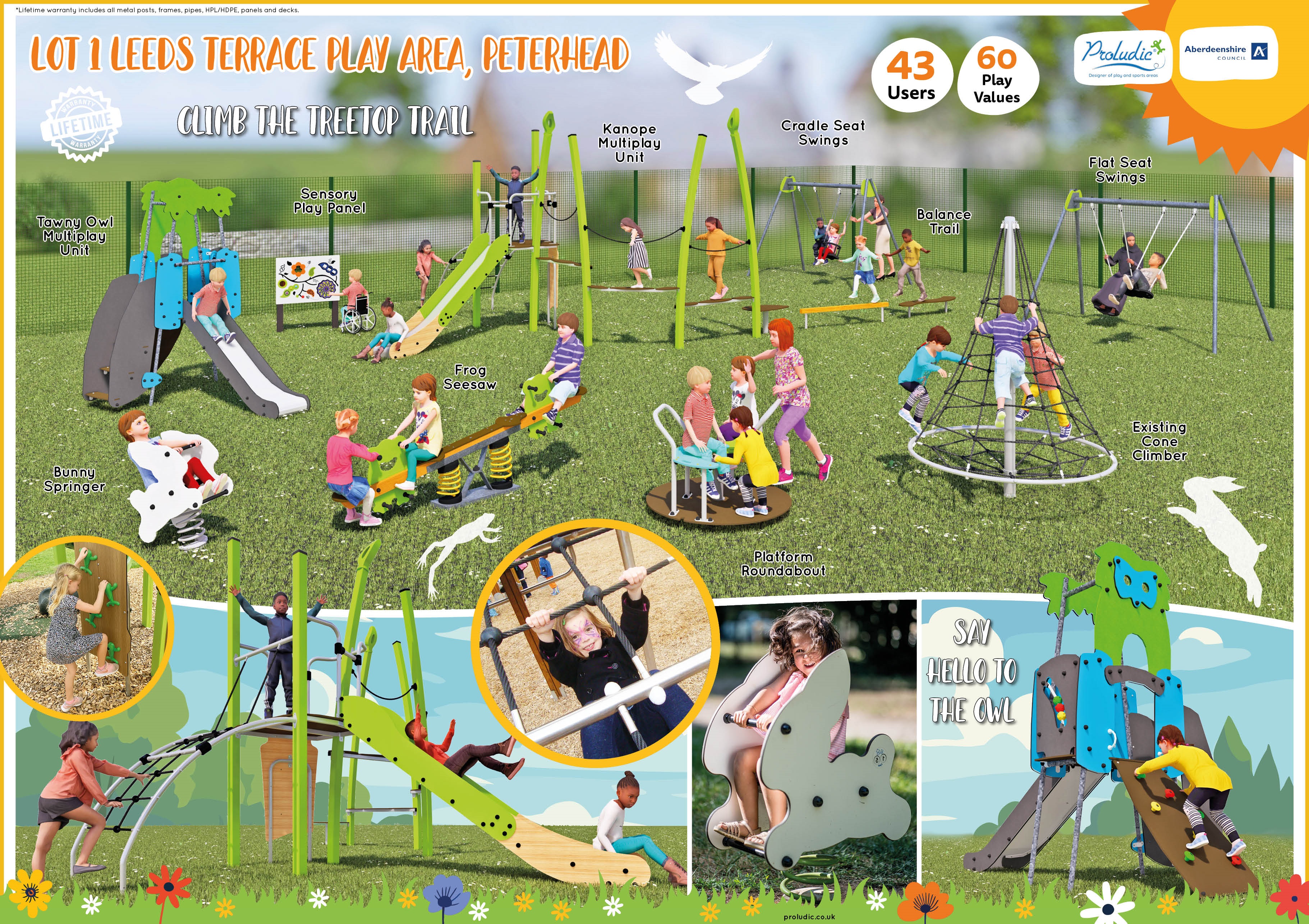 We have received design proposals from equipment suppliers (KOMPAN, SUTCLIFFE, WICKSTEED, SCOTPLAY AND PROLUDIC)which are now open to public vote. The design proposals are available to view below. To view larger images, right click on the images and select 'open image in new tab.'